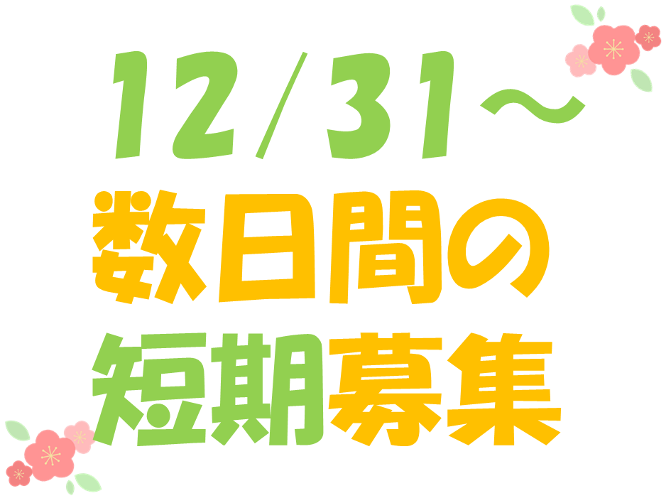 勤務日数の相談可能! 例)12月31日と1月2日と1月3日 など |