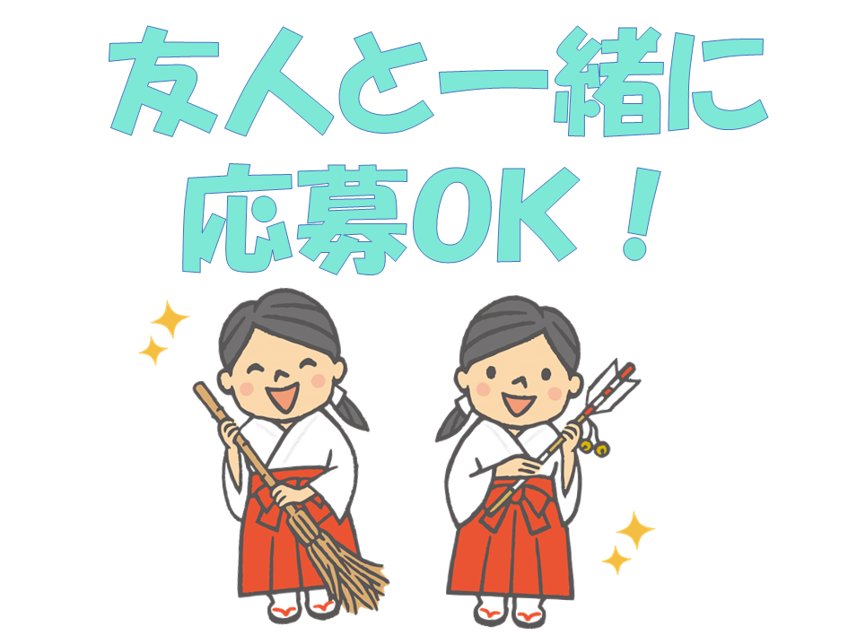 ★12/31~1/12までの期間限定★ お守り・お札の販売や、参拝者の ご案内、境内の清掃など、 巫女さんとしてのお仕事をお任せ! ※1日研修があります (衣装の着方や作法を学ぶため) ・-・ おすすめポイント! ・-・ *いつでも気軽に♪WEB面接OK! *時給1500円でしっかり稼げる★ *出勤日数の相談可能です◎ *昨年も大人気!年末年始限定! *WワークOK!大学生も活躍中♪ *帰省するタイミングで お仕事される方も多数☆ *友人と一緒にご応募OK◎ ・-・-・-・-・-・-・-・-・ 興味のある方はお気軽にご応募ください♪ ※電話での応募・問い合わせ受付中! TEL:0954-36-2386 |