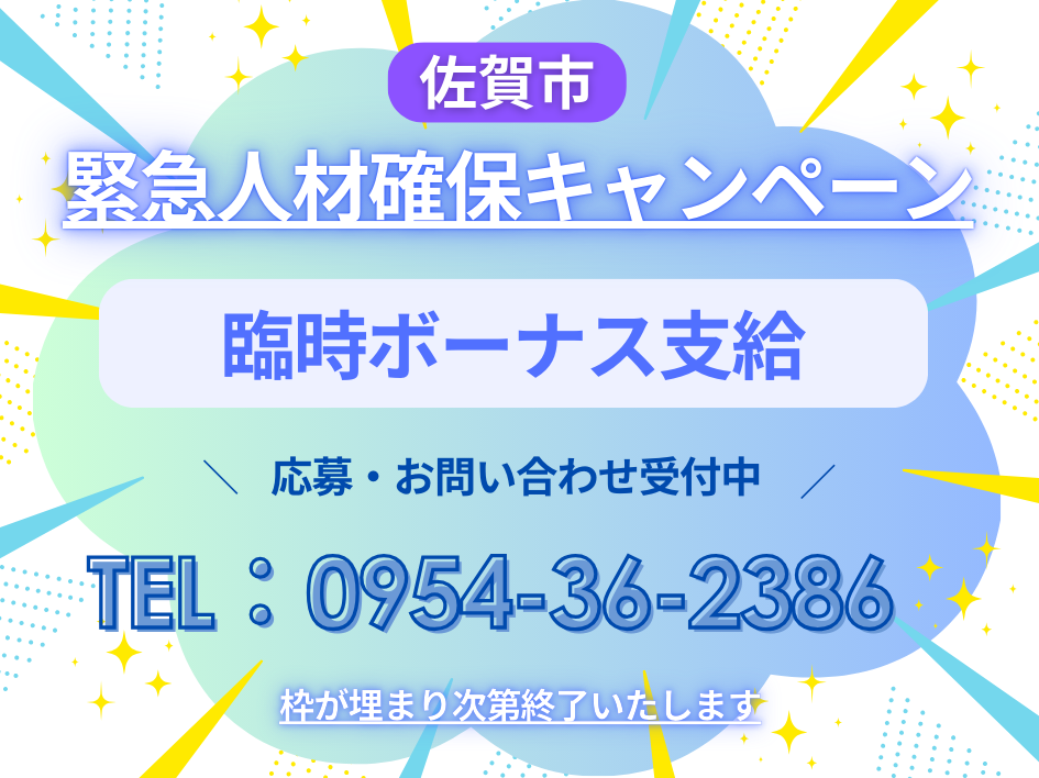 佐賀県武雄市北方町大字大崎1100-8 (佐賀支店) 佐賀県佐賀市木原2丁目22-23 ◇出張面接・WEB面接選べます◇ *会って安心対面面接 *いつでも気軽にWEB面接 どちらも対応可能ですので、 お気軽にご応募ください。 |