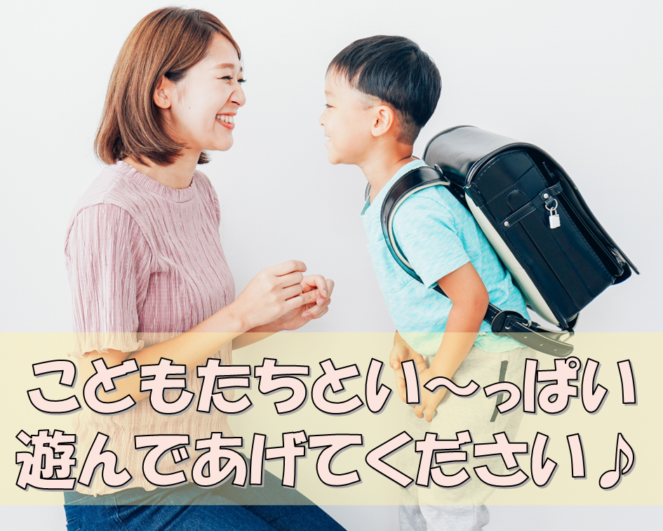 多久市内の各小学校のこどもたちが 通う放課後児童クラブの支援員として 働いてくださる方を大募集中です! 期間:3月25日~4月6日 (春休み期間の平日12日間限定) お気軽にお問い合わせください◎ *-*-*-*-*-*-*-*-* 具体的には・・・ こどもたちが遊んでいるところを 見守ったり、宿題の時間のサポート、 教室のかんたんな清掃や消毒・片付け などの作業をお任せします! ・-・ おすすめポイント! ・-・ ★年齢不問で積極採用中! ★未経験OK・資格不問です◎ ★残業ほとんどありません♪ ★土日祝はお休みです! ★春休みだけの期間限定! ★こどもたちの笑顔に癒される♪ ・-・-・-・-・-・-・-・-・ 「こどもたちが大好き!」 「子育て経験を活かしたい!」 「資格を活かして働きたい!」 そんなあなたの力が必要なんです♪ 教職を目指す学生さんなどもぜひ☆ まずはお気軽にご連絡ください◎ お問い合わせのみでもOKです! ※電話応募・お問い合わせ受付中! TEL:0954-36-2386 |