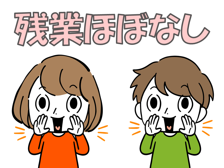 | 勤務時間・日数 | 9:00~17:45 ・休憩60分 ・実働7時間45分 ・残業ほぼなし ・多少のフレックスタイム制可能 |