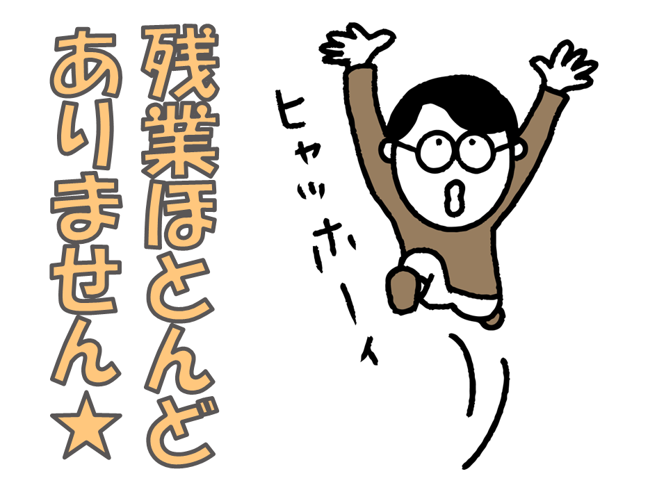 | 注目のポイント | 残業少なめ!定時になったらサッと帰れて嬉しい◎ |