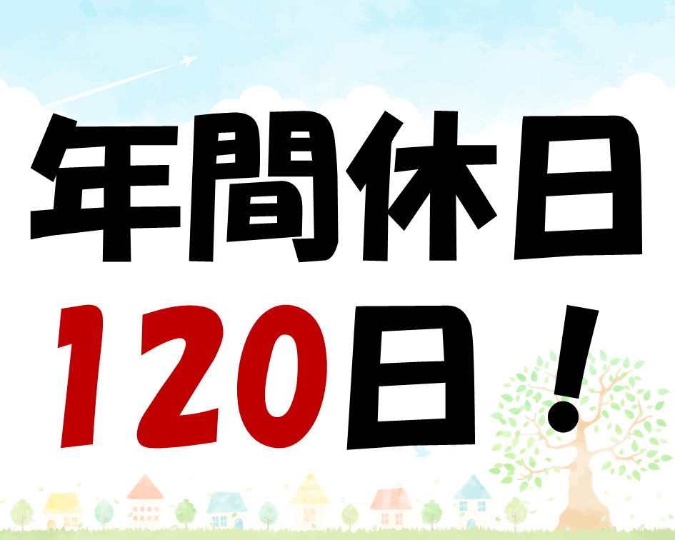 ・大型連休あり (GW・お盆・年末年始) ・会社カレンダーあり ・年間休日120日 |