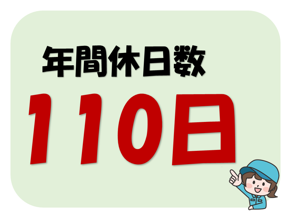・土曜日は会社カレンダーによる ・年間休日110日 ・大型連休あり (GW5日・お盆4日・年末年始9日) |