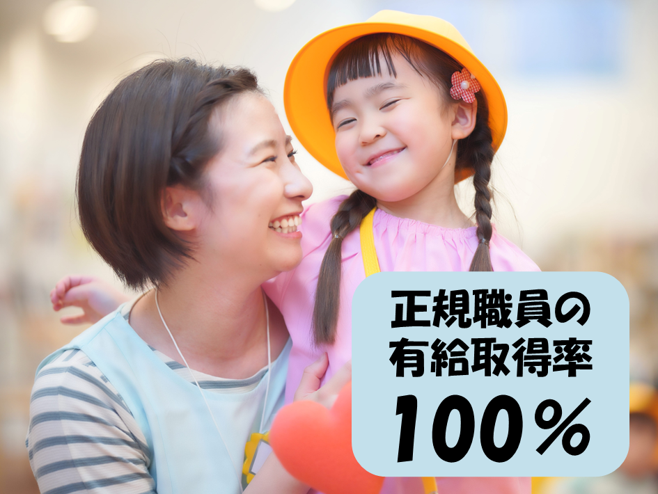 | 注目のポイント | 正規職員の有給取得率100%♪お休みもしっかりとれる職場環境です☆ |